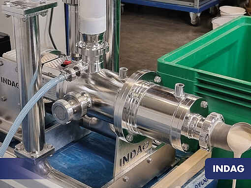 The latest development, our INDAG Solid-Liquid Inline Mixer, is used for continuous and gentle mixing of powders with liquids or granulates with liquids.