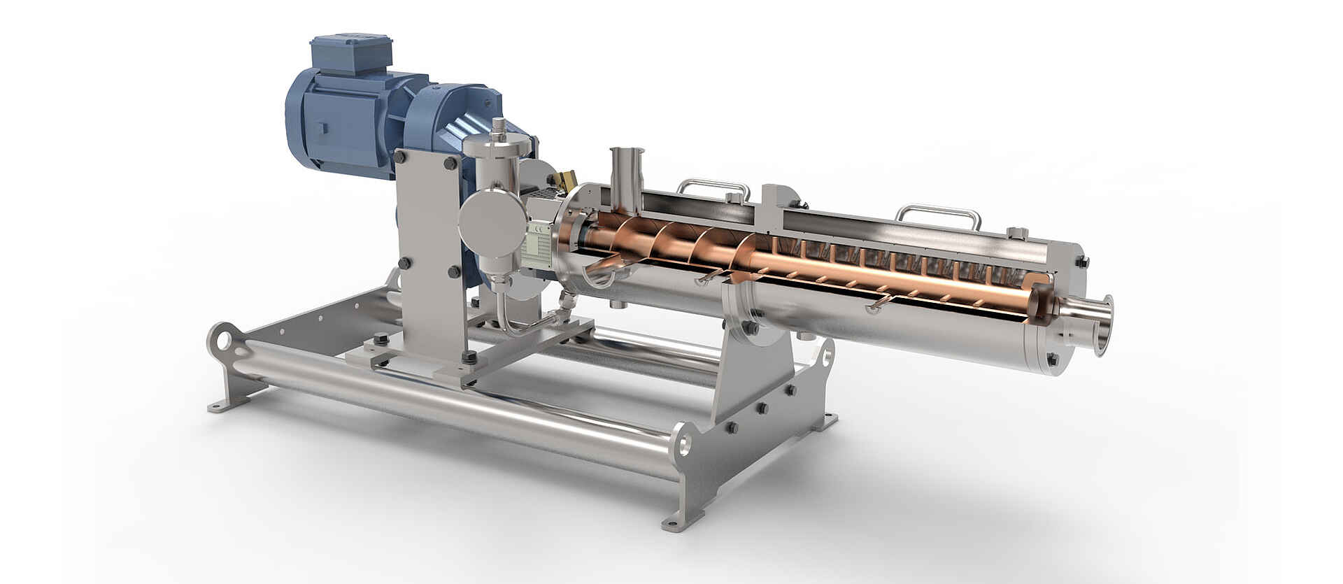 Le mélangeur en ligne solide-liquide de type DLM/FS est composé d'un segment de convoyage et d'un segment de mélange. Le liquide et les solides sont intégrés dans le segment de convoyage et transportés par une vis sans fin dans le segment de mélange. Dans le segment de mélange, des éléments mélangeurs sont disposés aussi bien sur le rotor que dans le stator. Grâce à la disposition spéciale des éléments mélangeurs et de la zone de convoyage, nous pouvons limiter la pénétration de gaz dans le produit à un minimum. À la sortie, le mélange est acheminé pratiquement sans pression à l'étape opératoire suivante. Le mélange est transporté soit dans un réservoir, soit dans une pompe. Le stator et le rotor peuvent tous deux être livrés en modèles pouvant être chauffés (à double paroi). Pour les machines dont les cycles de nettoyage manuel sont fréquents et du fait d’une meilleure facilité d’entretien, nous conseillons un bâti supportant l’enceinte du mélangeur sur le patin « Easy-clean ». Le DLM/FS se nettoie très bien en NEP. Chaque mélangeur peut au choix être équipé d'une garniture mécanique à double effet ou d'un presse-étoupe. Le DLM/FS existe dans plusieurs gabarits et le mélangeur est conforme pour les zones G2, D21 et D22 ATEX. Nous proposons des machines en location pour faire des essais chez le client ou chez INDAG.